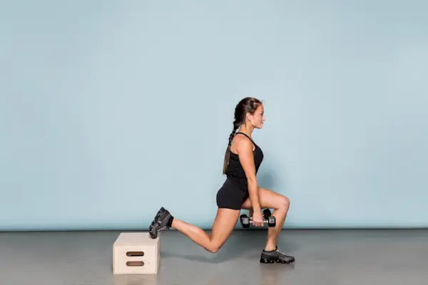 Coloque o pé direito em um banco ou caixa na altura do joelho, dobrando levemente o joelho e afaste o pé esquerdo cerca de 45 centímetros. Sua perna esquerda deve estar quase reta. Dobre o joelho esquerdo, sentando-se; seu joelho direito dobrará mais ao fazer isso e quase tocará o chão. Segure quando a coxa esquerda estiver paralela ao chão e depois levante-se. Isso é 1 repetição; faça 2 séries por perna.